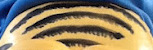 Disse to ovaler presses godt sammen, så midterlinjen bliver helt lige og der ikke er luft/hul/hud mellem øjnene. Små pupiller i sort sættes på øjnene tilsidst.